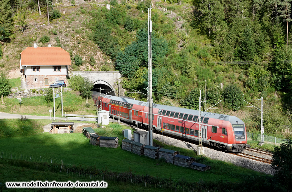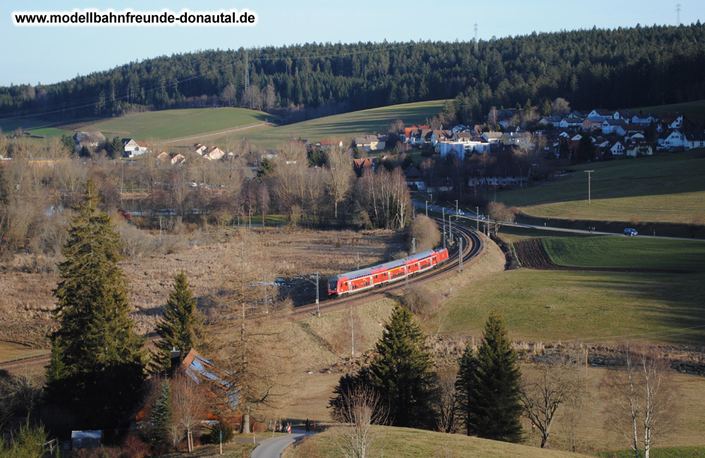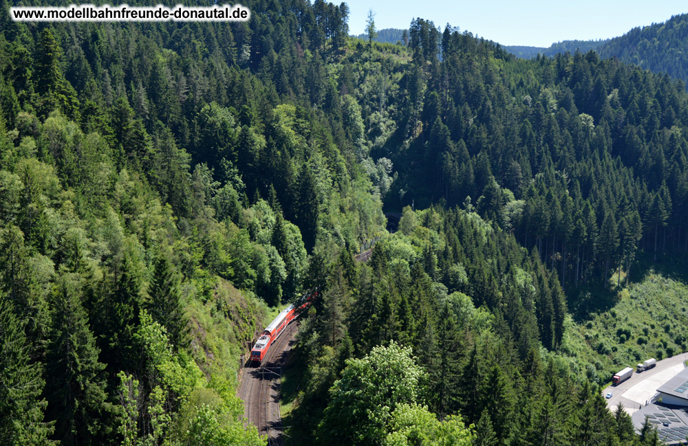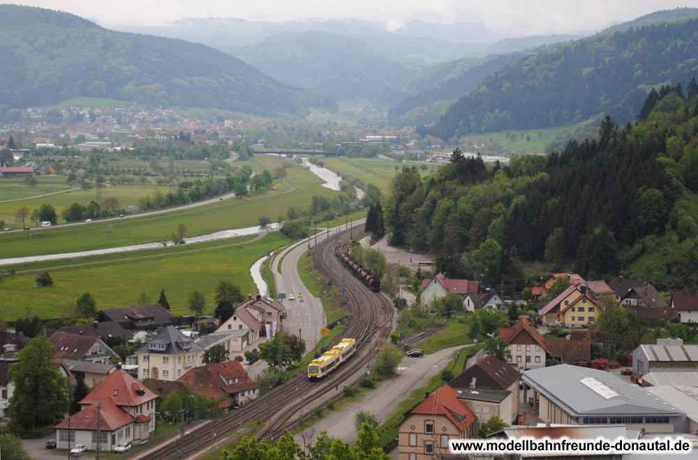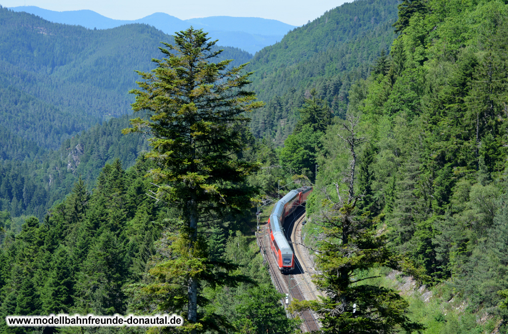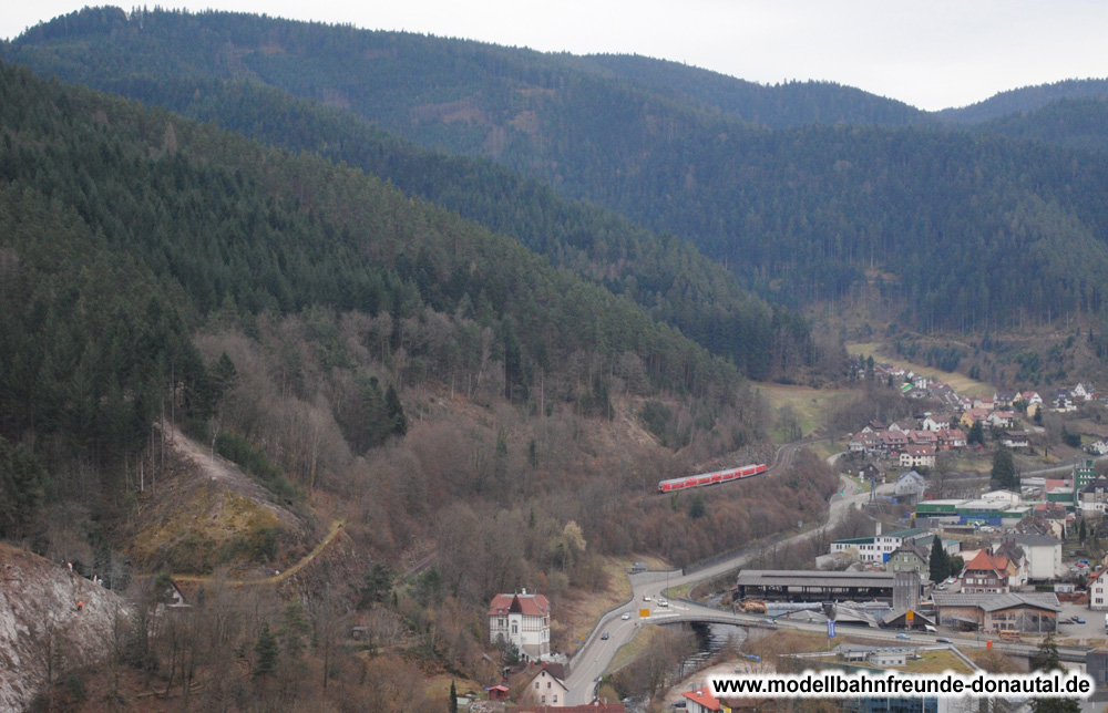 In Donaueschingen zweigt die "Höllentalbahn" über Neustadt (Schwarzwald) nach Freiburg(Breisgau) ab.