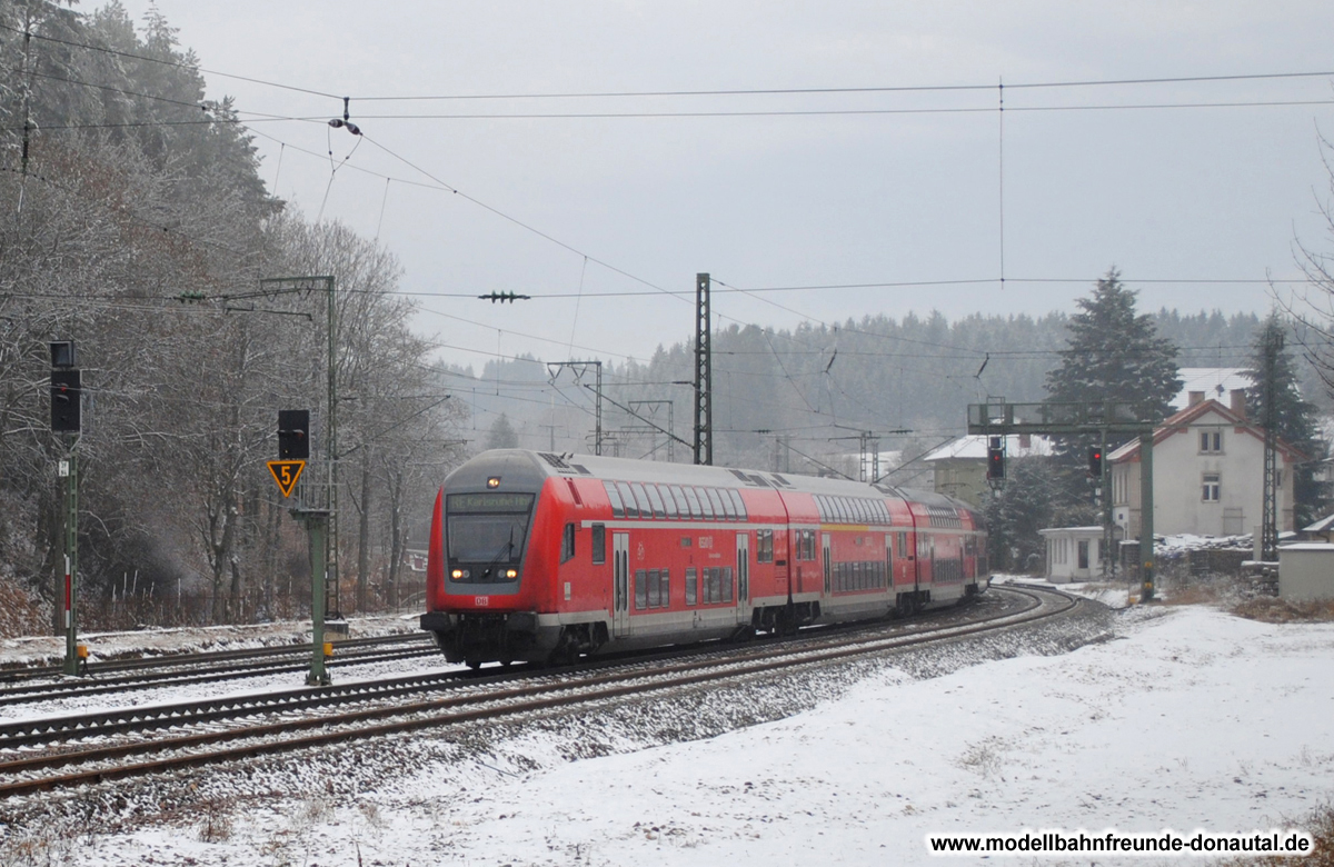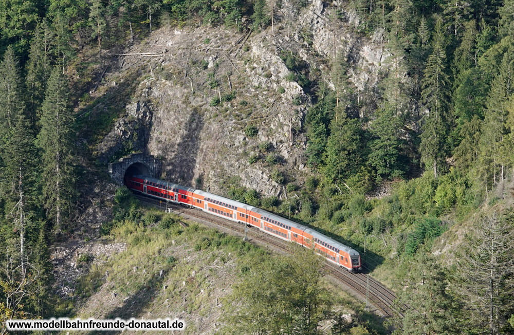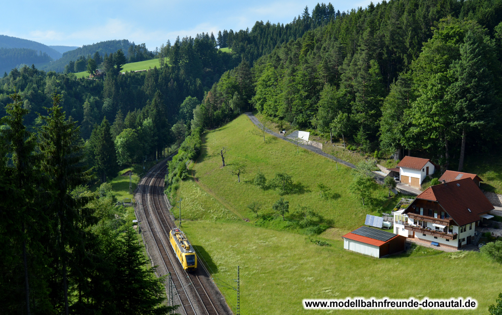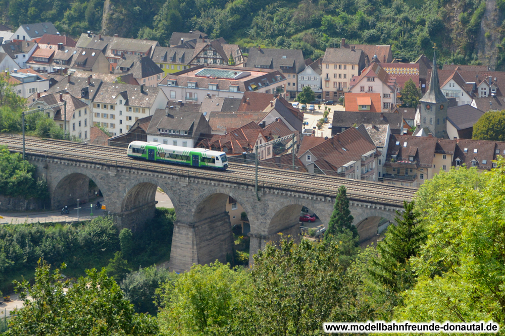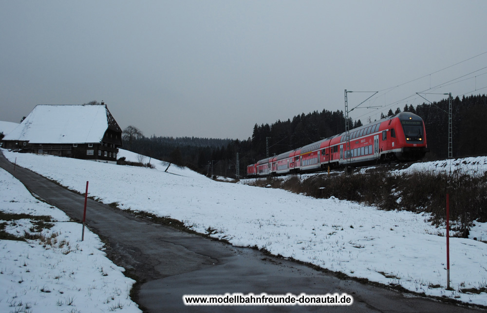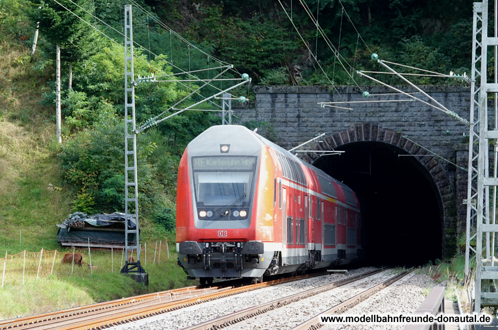 In Donaueschingen zweigt die "Höllentalbahn" über Neustadt (Schwarzwald) nach Freiburg(Breisgau) ab.