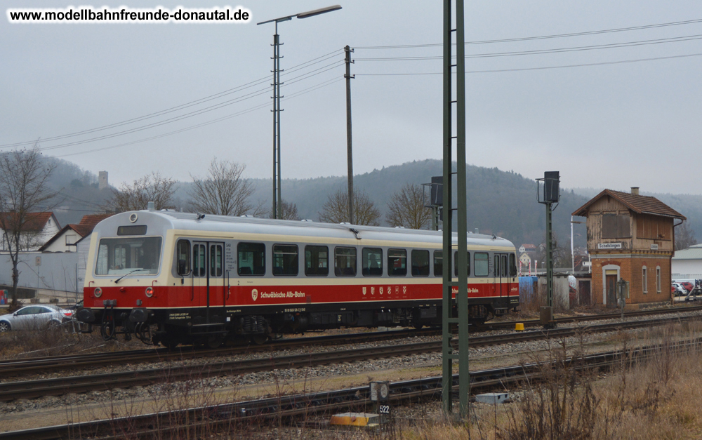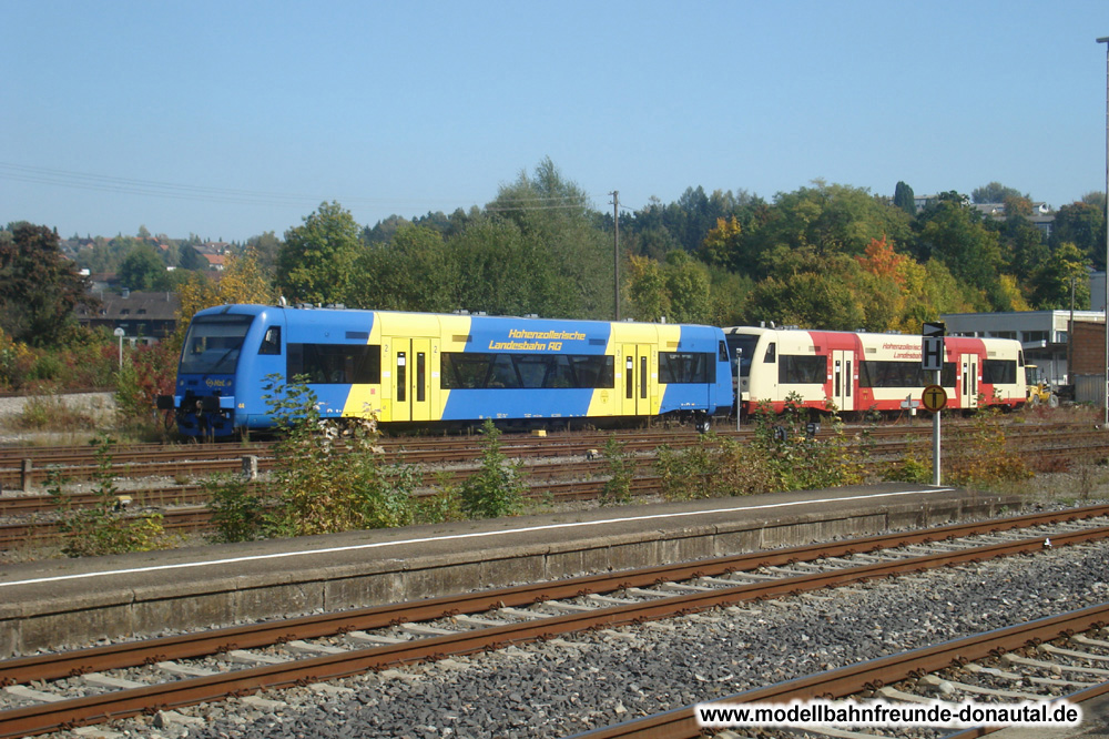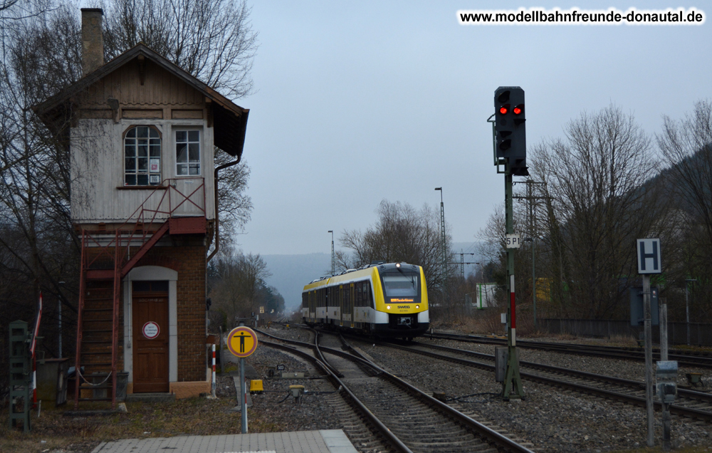 Für uns ist hier allerdings die Bahnstrecke von Ulm nach Südwesten in Richtung Donauquelle interessant. Am 2. August 1868 wurde der erste Abschnitt dieser Bahnstrecke von Ulm bis Blaubeuren eröffnet. Am 26. Juli 1873 erreichte diese Strecke Sigmaringen im preußischen Hohenzollernschen Lande. Um weitere 5 Kilometer Donauaufwärts wanderte der Schienenstrang mit der Eröffnung der Hohenzollernbahn (heute Zollern-Alb-Bahn ZAB1) von Tübingen über Balingen und Ebingen nach Sigmaringen am 4. Juli 1878. Diese Bahnstrecke erreichte durch das Schmeiental bei Inzigkofen das Donautal.