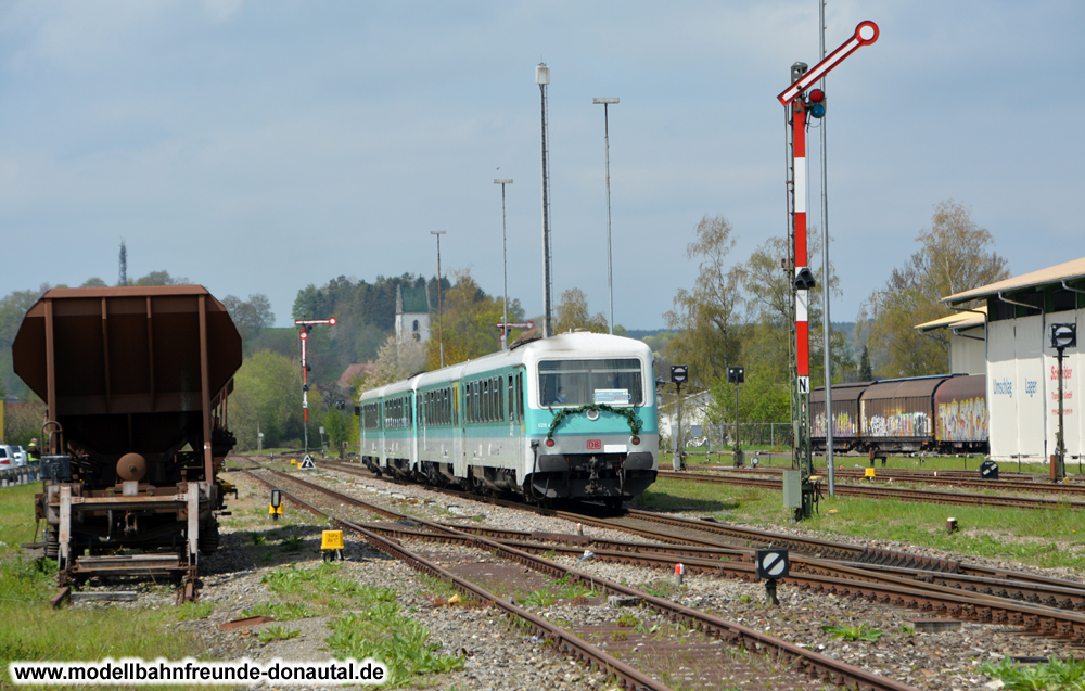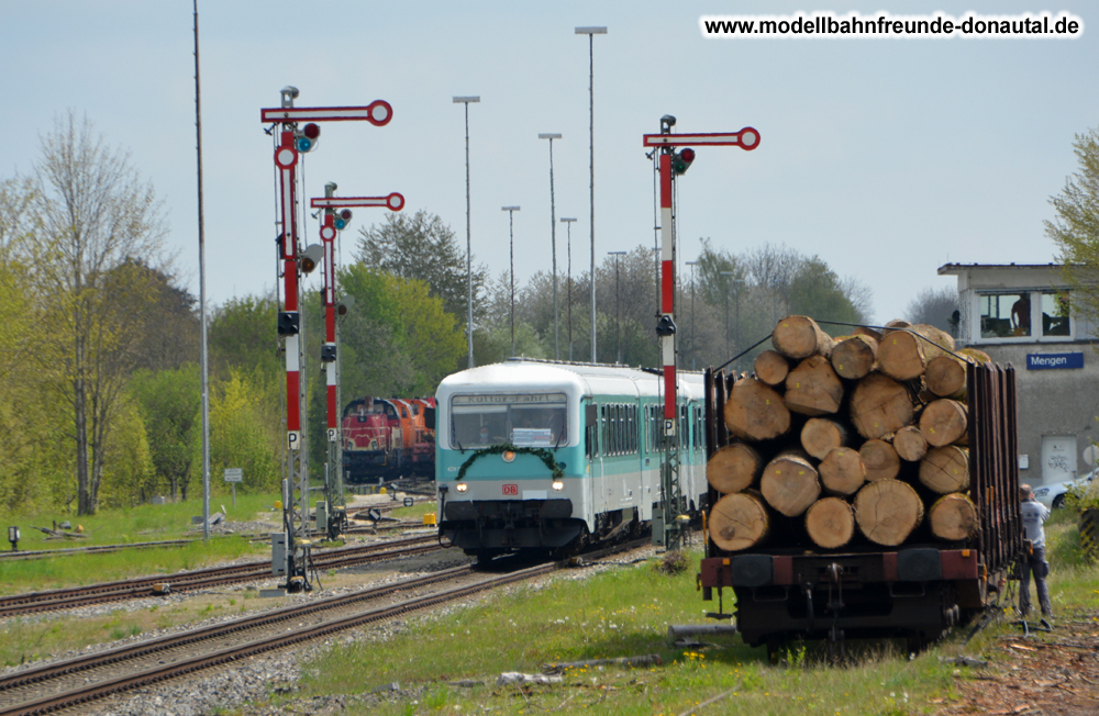 Wir fahren weiter in den dieselbetriebenen Fahrzeugen aus Ulm unterm Fahrdraht nach Donaueschingen.