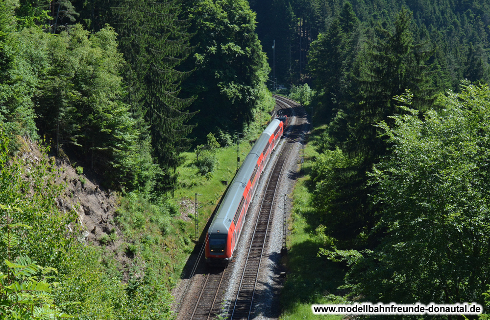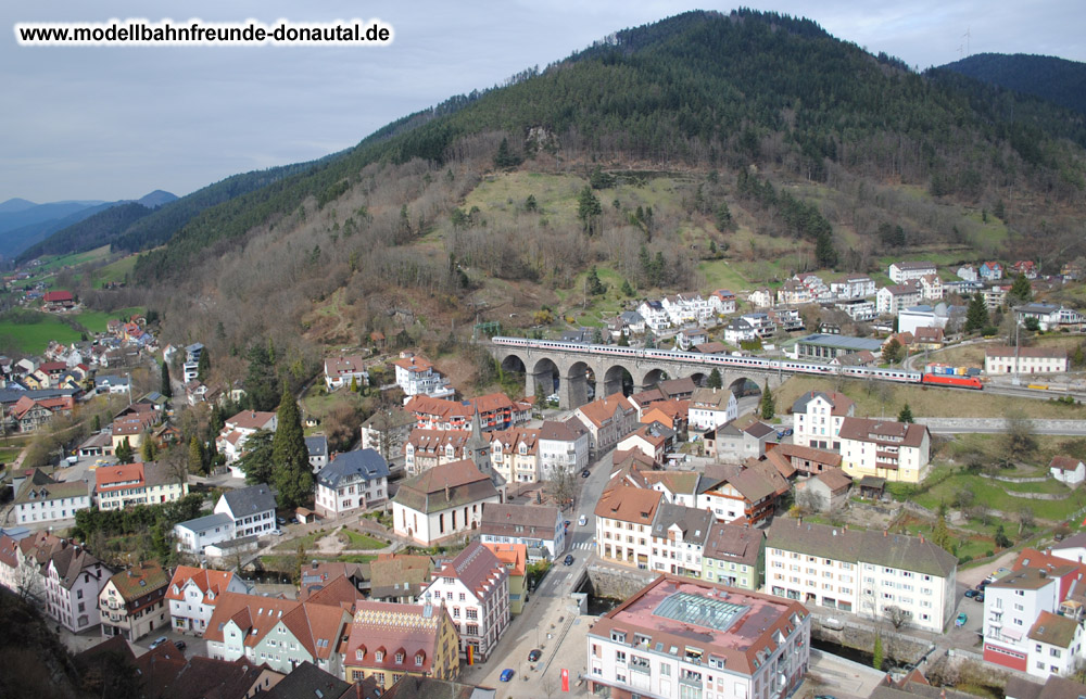 In Donaueschingen zweigt die "Höllentalbahn" über Neustadt (Schwarzwald) nach Freiburg(Breisgau) ab.